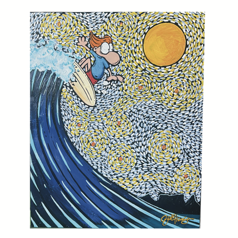 In 2015, after a nearly 20 year hiatus, I returned to the easel and painting. Inspired by Van Gogh’s starry night series and Roy Lichtenstein pop art, I had my first solo exhibition, “Starry Nights Over False Bay”, December 2016 which featured paintings depicting famous artworks mixed with his own cartoon characters. Since then, I have exhibited in various group and solo exhibitions in Cape Town and Gauteng. I like to include bright colours and humour into my paintings. My influences are comics and pop art. I believe art should be in the eye of the beholder and it should be accessible to everyone to both explore their art style and to collect. Please browse through and enjoy. If you would like to purchase any of these pieces or make enquiries about commissions, please send me an email.